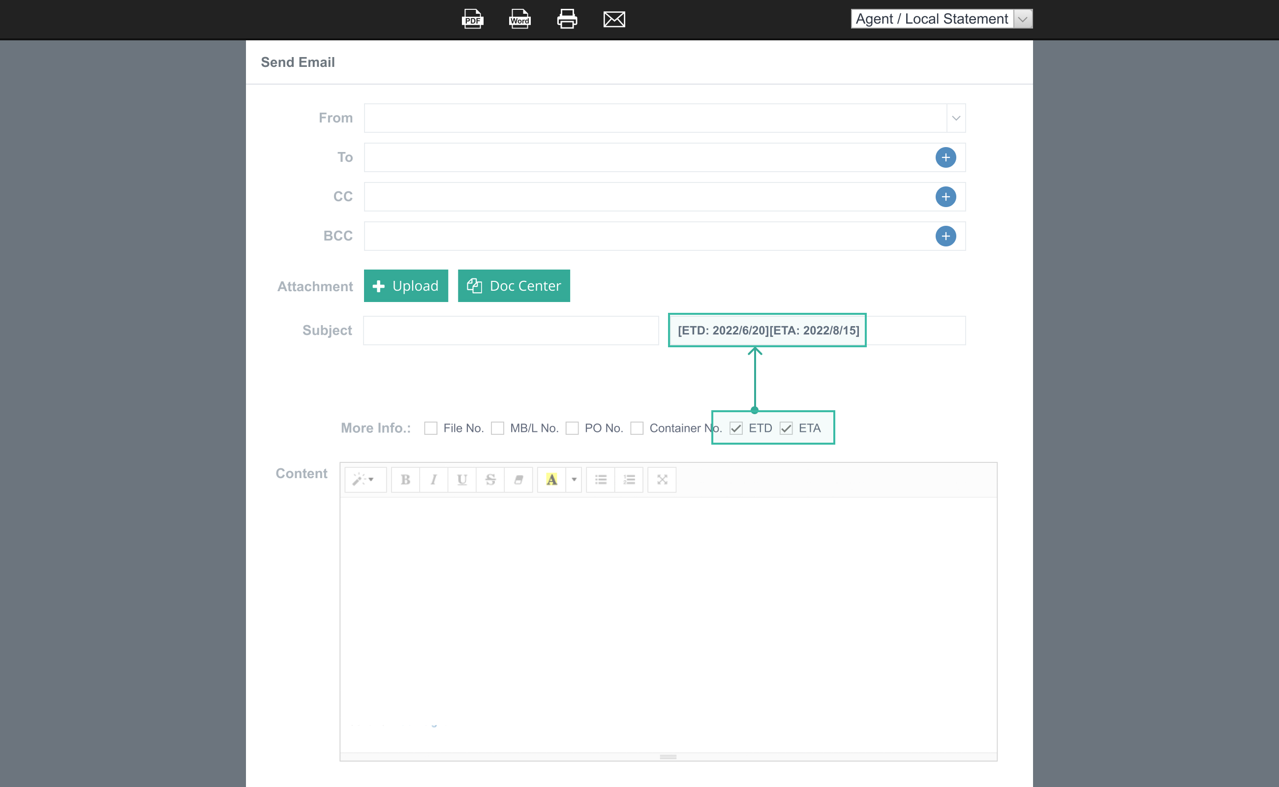 Add ETD and ETA Information on the Email Subject