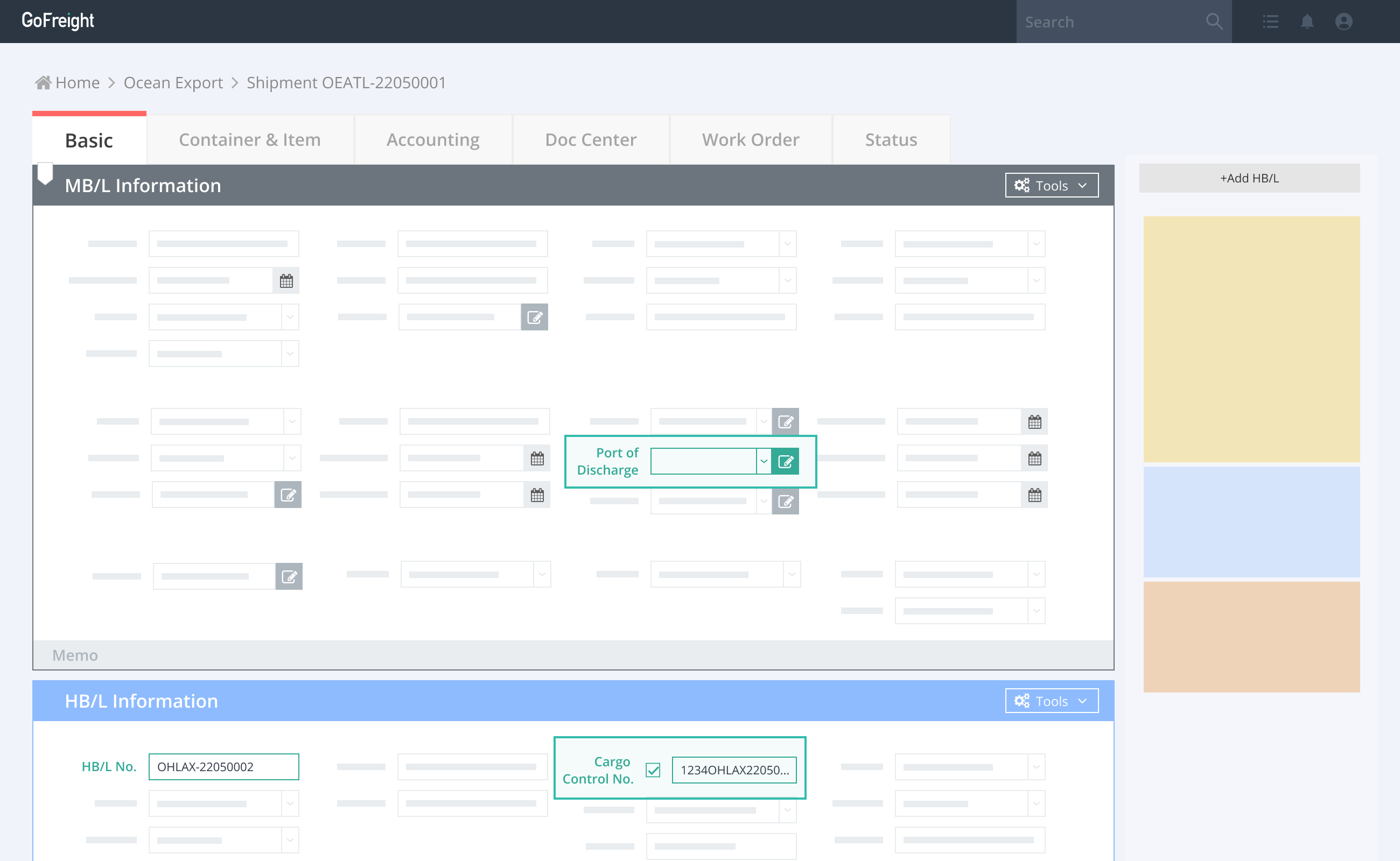 When a Canadian destination is inputted at the Port of Discharge/Final Destination/Air Destination fields, an auto-generated Cargo Control Number will be displayed on the HB/L or HAWB.
