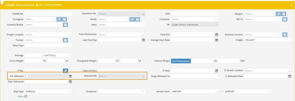 In the air import module, there are two new fields, called Frt. Released and Released By for you to mark down whether a specific shipment has been released, when it is released, and by whom it is released.