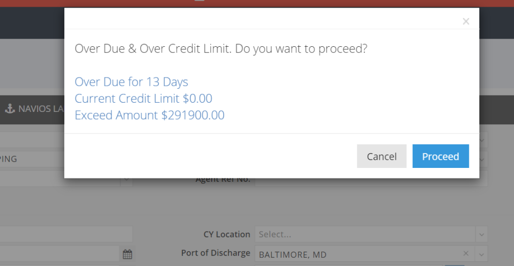 In addition, if the payment of the consignee has been overdue or the consignee has exceeded the credit limit, a window will appear once the Frt. Released box is checked as a warning.