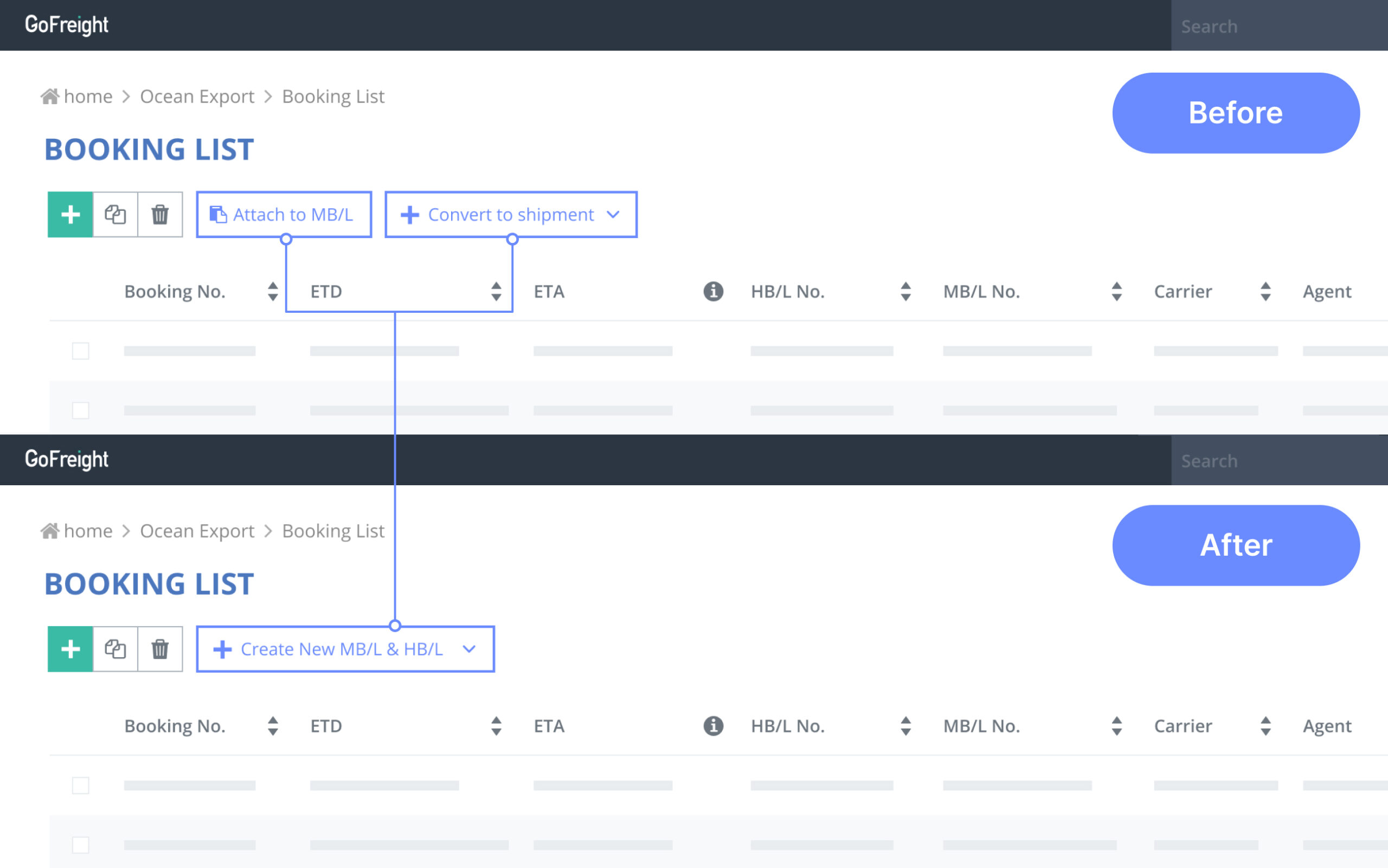 With the update, new single / multiple booking conversion flows are implemented for users to convert bookings into shipments more easily and intuitively. Users will still have the option to attach one or multiple bookings to an existing MB/L.