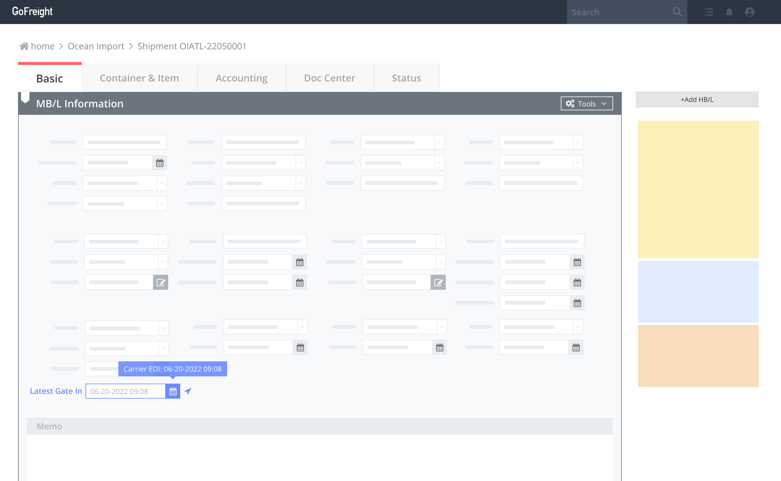 The Latest Gate In time is now displayed directly on the MBLs for GoFreight users to easily check and manage rates.