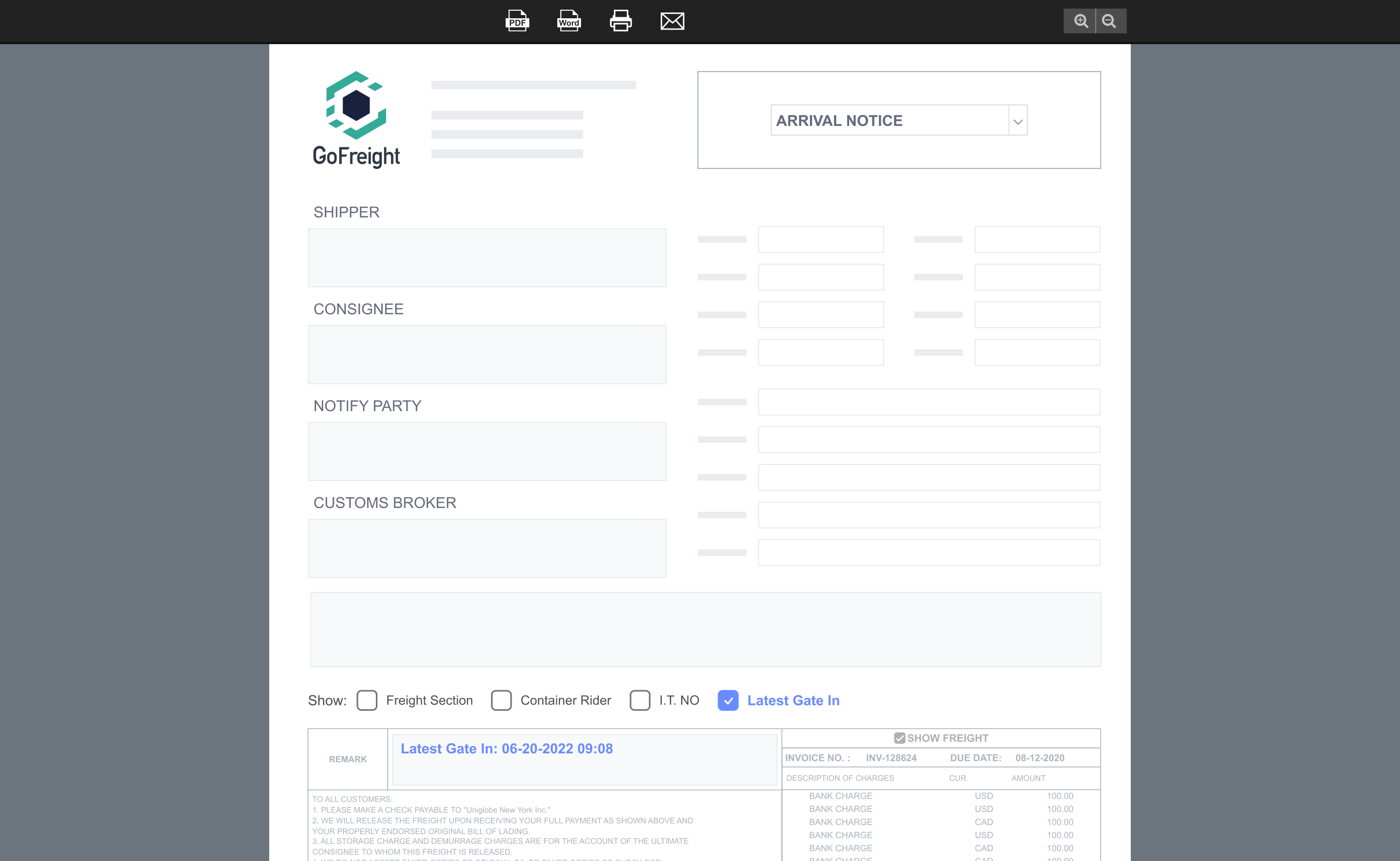 You can also choose to include details on the Arrival Notice for your customers simply by clicking the Latest Gate In box just above the Remark section.