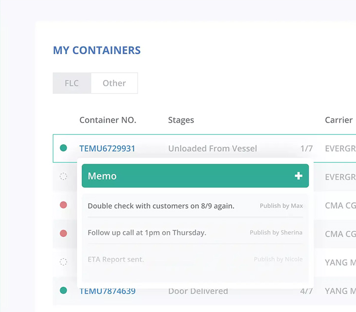 Navigate the complexities of your shipments with color-coded remarks and memos, ensuring clarity and prompt action through every phase of the ocean freight lifecycle.