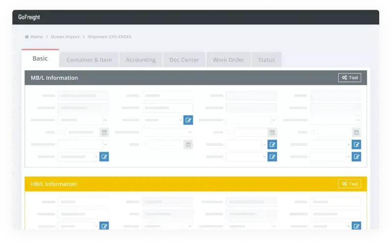 Aggregate your House Bill of Lading (HBL), Master Bill of Lading (MBL), Federal Maritime Commission (FMC) documentation, invoices, container statuses, and more in a singular, accessible location within GoFreight’s ocean freight software.
